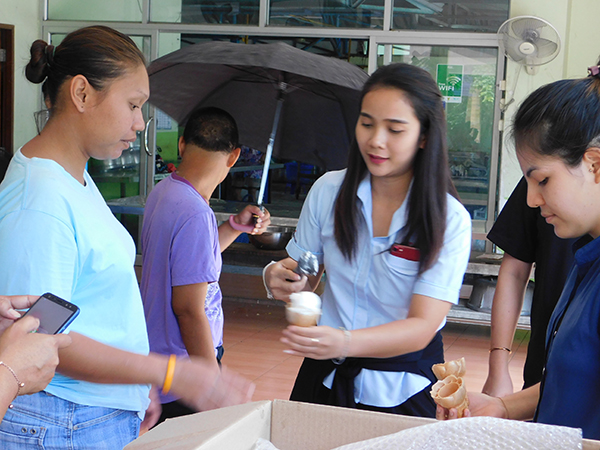project team of Turning Waste into Merit donated used plastic bottles to Wat Chak Daeng